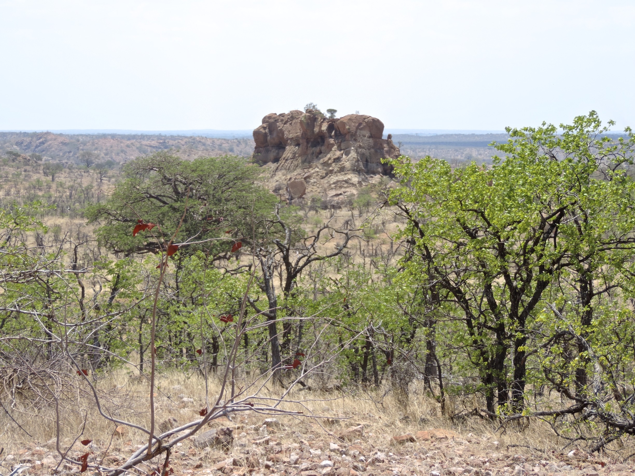 11 november 2014: wapenstilstand. Om 5 uur uit bed want we willen via de beruchte Beitbridge grenspost naar Zimbabwe. Heel ver moeten we niet rijden: een goeie 450 km via het Zuid-Afrikaanse grensstadje Mussina en Bulawayo naar Big Cave Camp in de Matobo heuvels. Om de drukte aan de grens te vermijden willen we er heel vroeg staan.