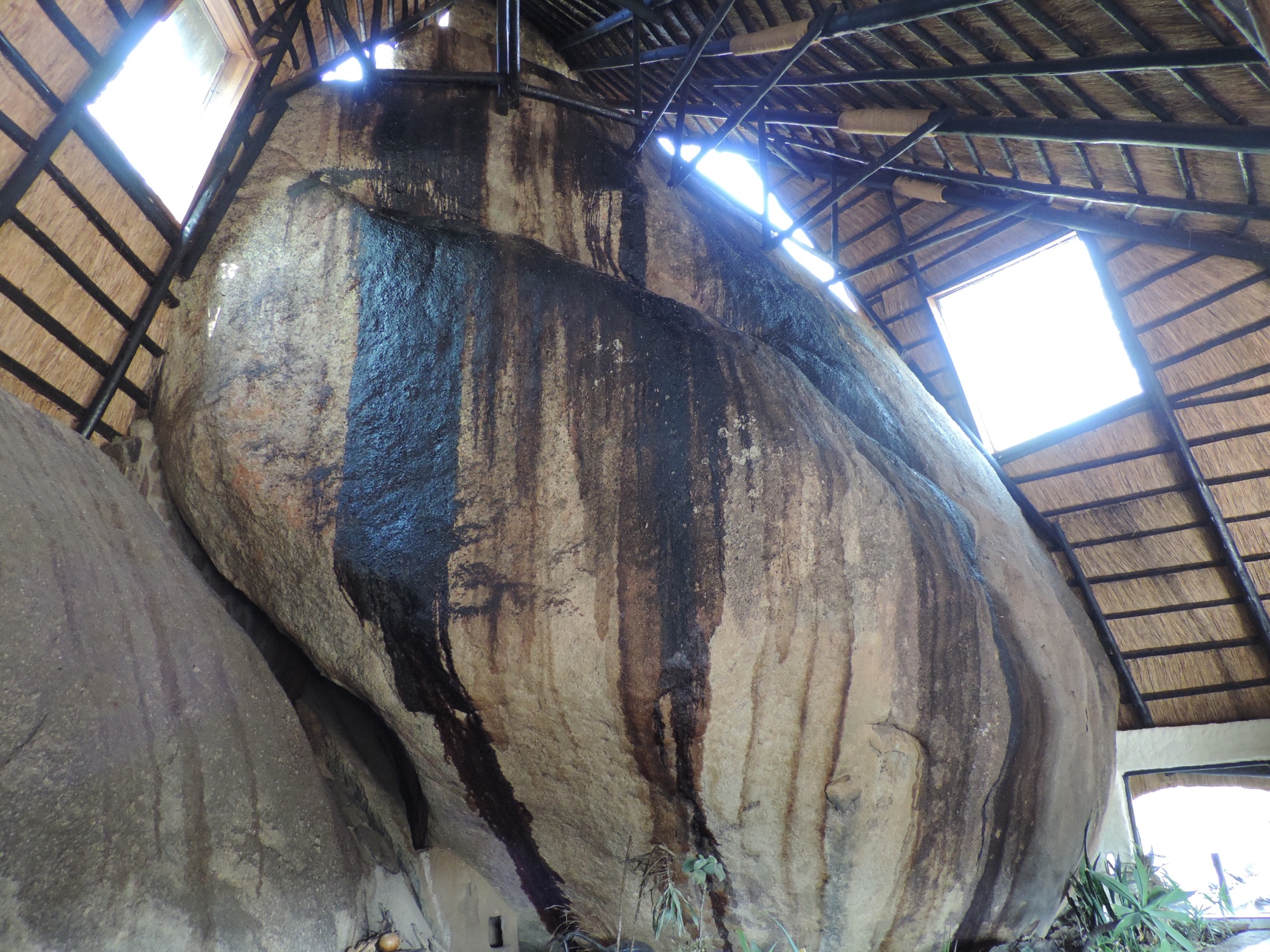 Nog een kleine 100 km tot Madi a Thavha Mountain Lodge, ons verblijf voor de laatste twee dagen van deze vakantie. Eerst inkopen doen in de Checkers supermarkt. Wereld van verschil met de “supermarkten” in Zimbabwe: enorme keuze, luxe-produkten, vers, kortom: we zijn terug in de beschaving!