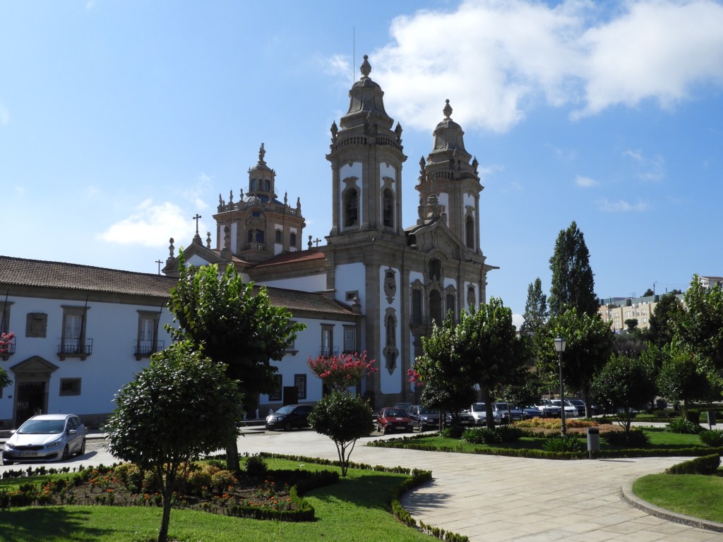 We parkeren – betalend – aan de rand van de oude binnenstad. We hebben wat tijd nodig om de weg te vinden naar het middeleeuwse deel van de stad. Tot we op de Praça Camões uitkomen, een statig plein met het vroegere paleis van de hertogen van Bragança, het stadhuis en de Santa Maria Major kerk. De kerk zou binnenin een mengeling zijn van stijlen: romaans, maniëristisch en laat-barok. Dat kunnen we echter niet controleren want … er gaat een trouwplechtigheid plaats vinden.
